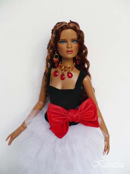 (The task was to make the dress as the Tonner dress, just to shoulders is not dropped, and the fabric is not brilliant, so that was)